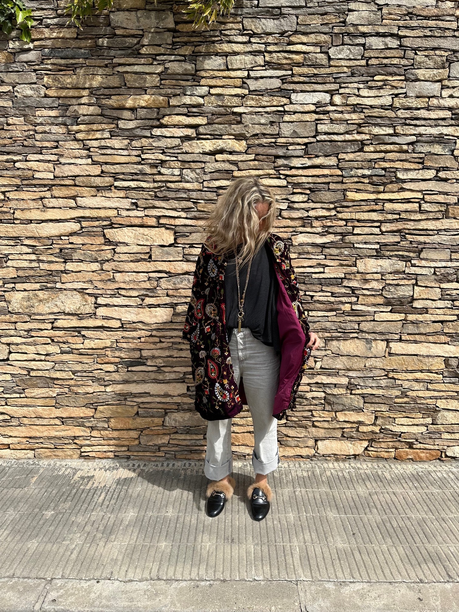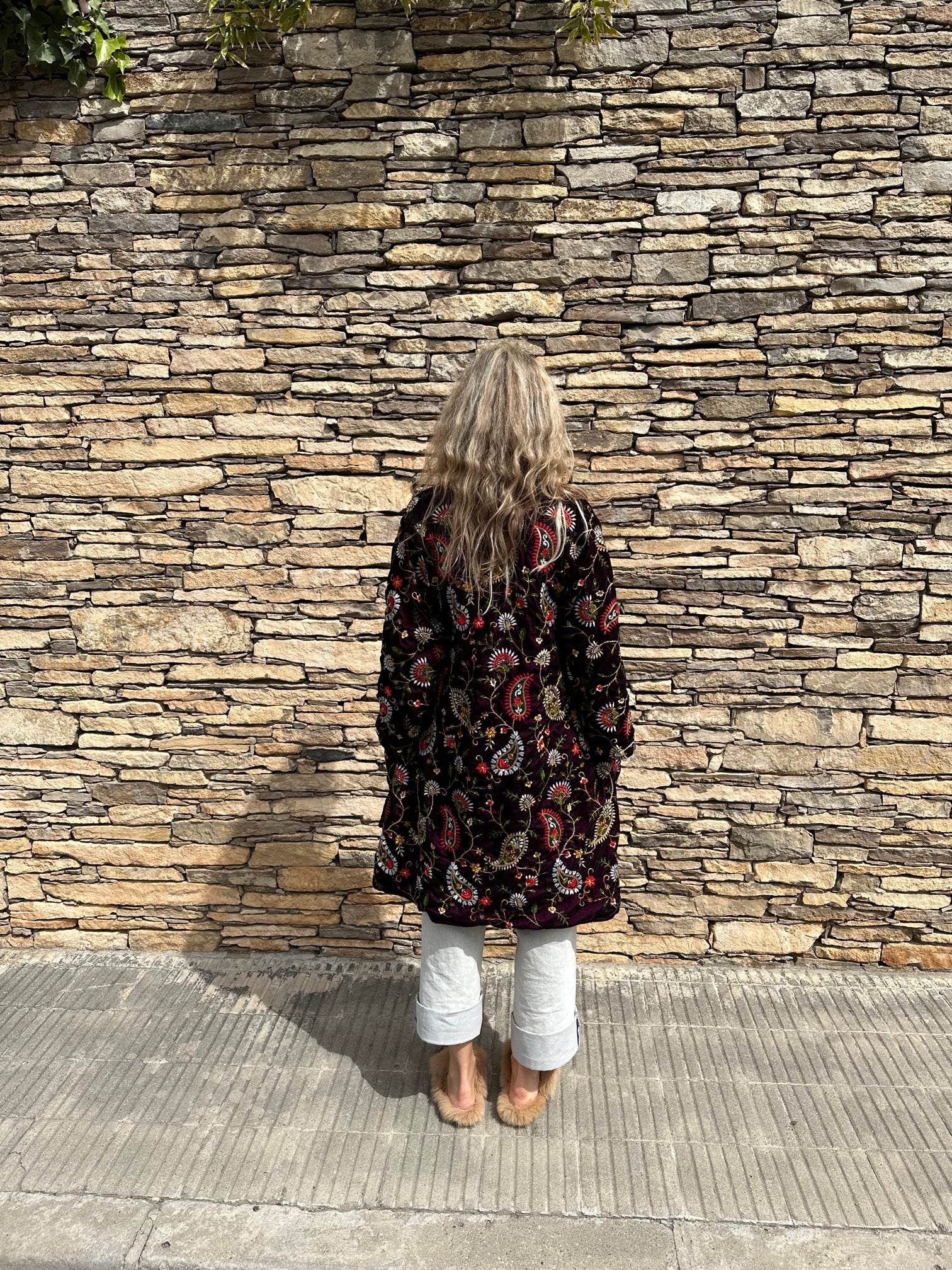 This unique jacket is made out of soft cotton velvet and has the most incredible embroidery and an easy to wear. It’s the coolest power piece with a dose of hippy vibes.