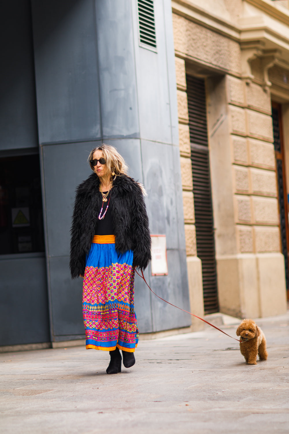 The skirt is flowing and open, also long to accomodate many sizes and fits from EU 34 to 44.