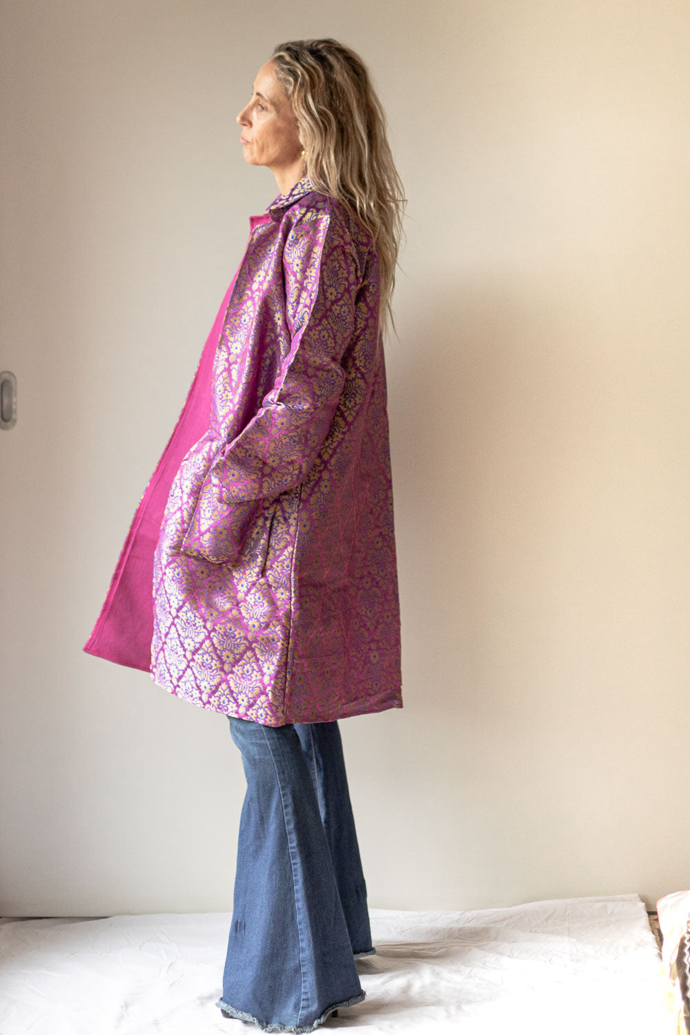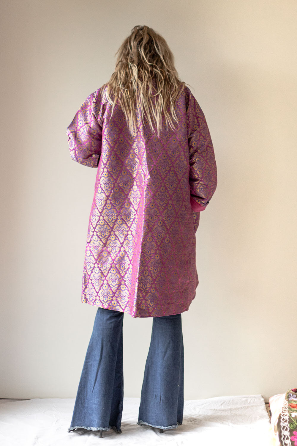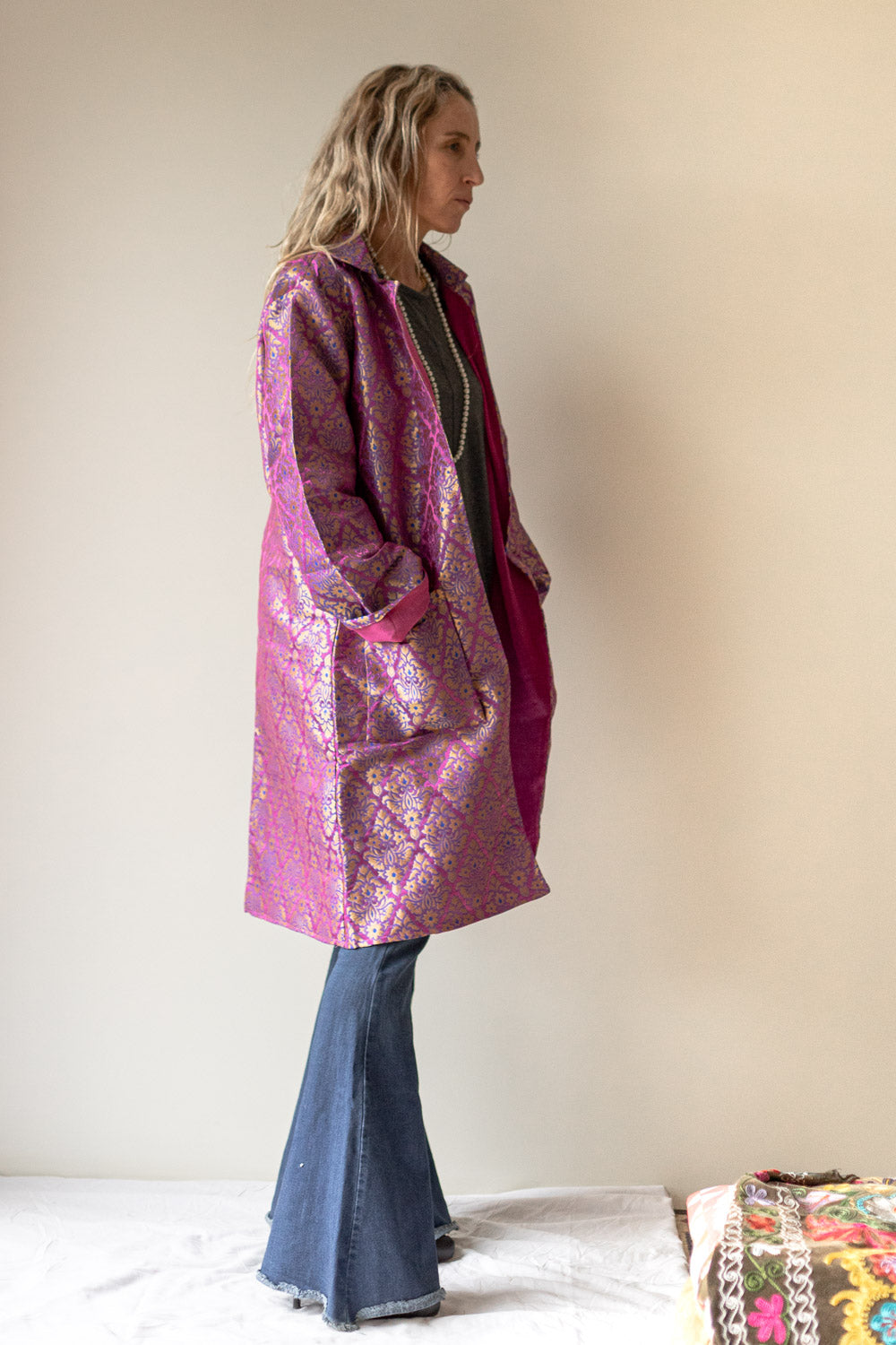 This coat is made of poly silk satin which has a wonderful shine and beautiful smooth texture. It's not only comfortable to wear but also effortlessly elegant, making it ideal for a wide range of occasions and outfits.